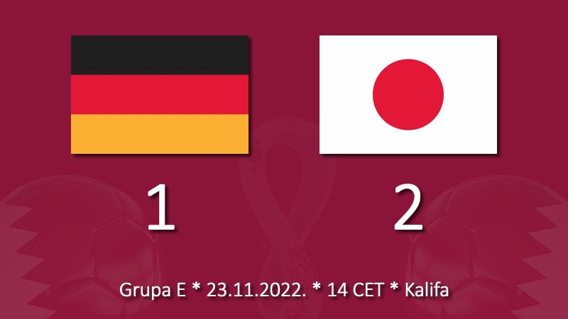 Selekcija Japana pobedila Nemačku sa 2:1.